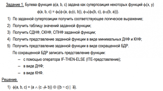 Задание 1. Булева функция (a, b, c) задана как суперпозиция некоторых функций i(x, y)