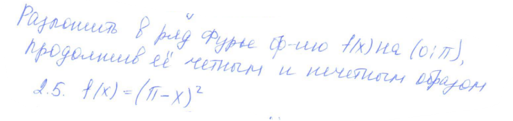 Главная » Учебные материалы » Математика » Решения задач » 1 семестр » Разложить в ряд Фурье функцию f(x) на (). Продолжив ее четным и нечетным образом