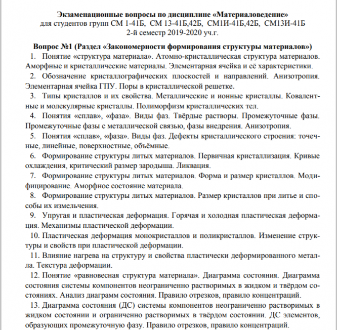 Для студентов МГТУ им. Н.Э.Баумана по предмету Материаловедение1 ЧАСТЬ. РАСПИСАННЫЕ ОТВЕТЫ НА ВОПРОСЫ К ЭКЗАМЕНУ У КАРПУХИНА1 ЧАСТЬ. РАСПИСАННЫЕ ОТВЕТЫ НА ВОПРОСЫ К ЭКЗАМЕНУ У КАРПУХИНА