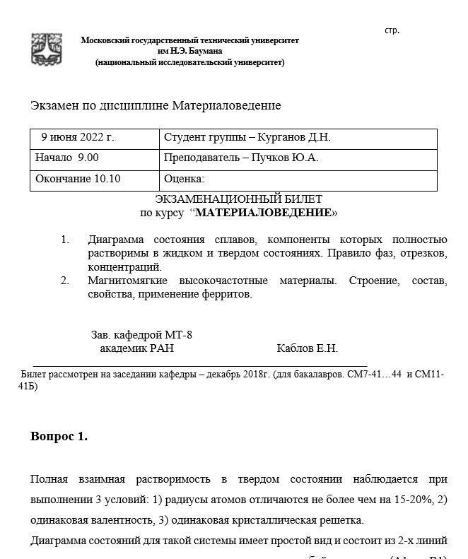 Для студентов МГТУ им. Н.Э.Баумана по предмету МатериаловедениеОтветы всех билетов к экзамену 2022г-2023гОтветы всех билетов к экзамену 2022г-2023г