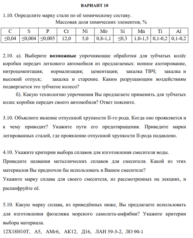 ОТВЕТ НА 27 ВАРИАНТОВ К РК №2: Маркировка стали, ХТО стали, конструкционные материалы!