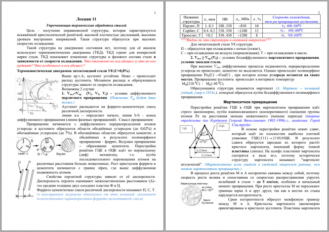 22. Термокинетическая диаграмма стали (на примере стали У8). Критическая скорость охлаждения. Закономерности формирования структуры стали при мартенситном превращении. 23. Термокинетическая диаграмма доэвтектоидной стали (на примере стали 45). Закономерности формирования структуры стали при бейнитном превращении. 24. Особенности мартенситного превращения в сталях. Структура и свойства мартенсита, температуры начала и окончания мартенситного превращения в зависимости от количества углерода в стали. 25. Нормализация и закалка стали. Выбор оптимальных температур закалки доэвтектоидных и заэвтектоидных углеродистых сталей. Закалочные напряжения. Особенности закалки стали.