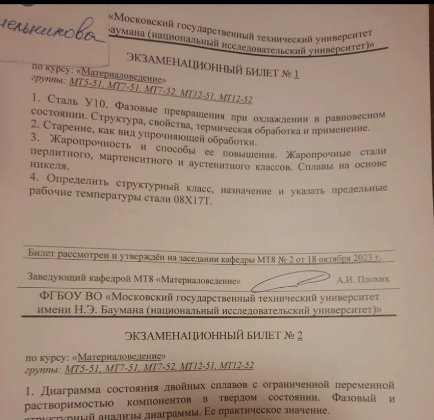 Для студентов МГТУ им. Н.Э.Баумана по предмету МатериаловедениеОтветы всех билетов к экзамену 2023г-2024гОтветы всех билетов к экзамену 2023г-2024г