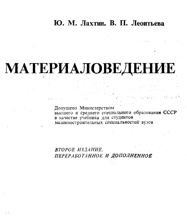 Для студентов МГТУ им. Н.Э.Баумана по предмету МатериаловедениеЛахтин Ю.М., Леонтьева В.П. - МатериаловедениеЛахтин Ю.М., Леонтьева В.П. - Материаловедение 2016-06-10СтудИзба