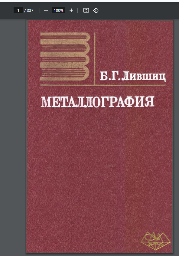 Металлография. Учебник для вузов. Лившиц Б. Г.- М.: Металлургия, 1990, 236 с.
