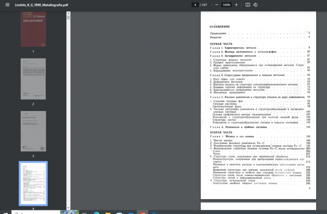 Для студентов металлургических вузов и факультетов; может быть ис- пользована инженерно-техническими работниками металлургических и маши- ностроительных предприятий. Ил. 337. Табл. 10. Библиогр. список: 18 назв. л 2608000000-136 040(01)-90 56-90 ISBN 5-229-00474-6 © Лившиц Б. Г., издательство «Ме- таллургия», 1990. ОГЛАВЛЕНИЕ Предисловие Введение ПЕРВАЯ ЧАСТЬ Глава 2. Методы эксперимента в металлографии Глава 1. Характеристика металла Глава 3. Затвердевание металлов 1. Структура жидких металлов 2. Процесс кристаллизации 3. Форма кристаллов, образующихся при затвердевании металла. Струк тура слитка 4. Выращивание монокристаллов Глава 4. Структурные превращения в твердых металлах 1.