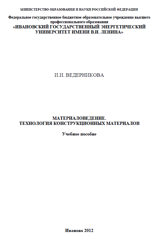 Для студентов ИГЭУ им. Ленина по предмету МатериаловедениеВедерникова И.И. - Материаловедение. Технология конструкционных материаловВедерникова И.И. - Материаловедение. Технология конструкционных материалов