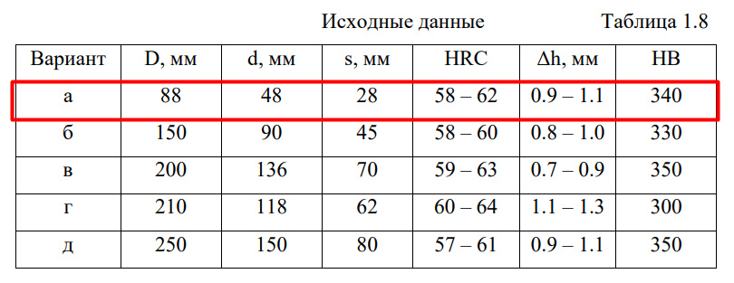 Задание МД - 8 (а – д). Пользуясь «Марочником сталей и сплавов», выбрать марку стали для изготовления шестерни редуктора открытого типа для привода транспортёрной ленты, эксплуатируемой на горнообогатительном комбинате (рис.1.8). Производство редукторов единичное. При выборе стали использовать данные согласно выданному варианту домашнего задания (табл.1.8): основные размеры шестерни, твёрдость поверхности зубьев HRC и глубина упрочнённого слоя Δh в указанных пределах, твердость сердцевины НВ (не менее). Обосновать сделанный выбор стали, рекомендовать обработку шестерни, которая обеспечит его работоспособность в предлагаемых условиях.
