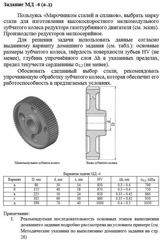 ДЗ МД: Выбор материала и технологии термической обработки вариант 4