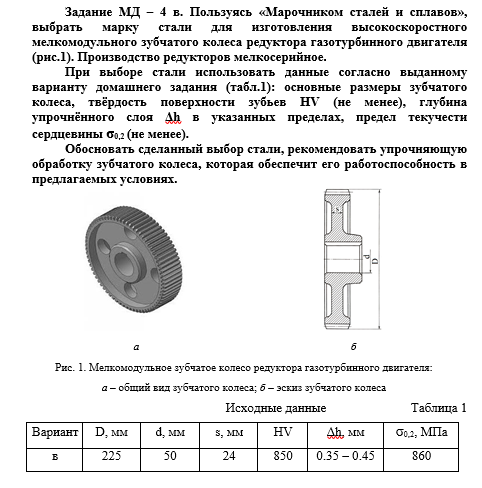 ДЗ МД: Выбор материала и технологии термической обработки вариант 4