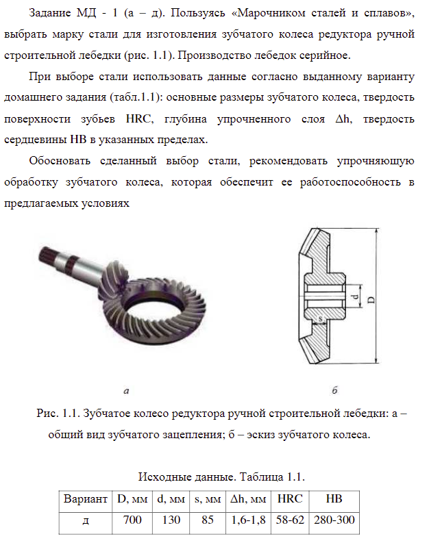 ДЗ МД: Выбор материала и технологии термической обработки вариант 1