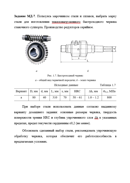 ДЗ МД: Выбор материала и технологии термической обработки вариант 7