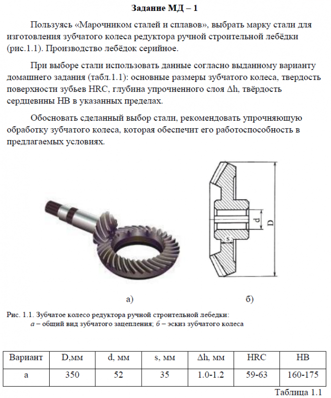 ДЗ МД: Выбор материала и технологии термической обработки вариант 1