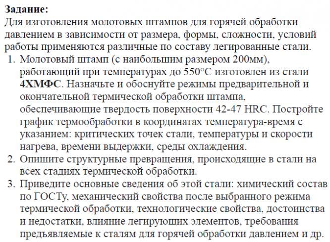 ДЗ ИШтг: Выбор материала и технологии термической обработки вариант 3