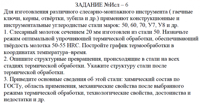 ДЗ ИСл: Выбор материала и технологии термической обработки вариант 6