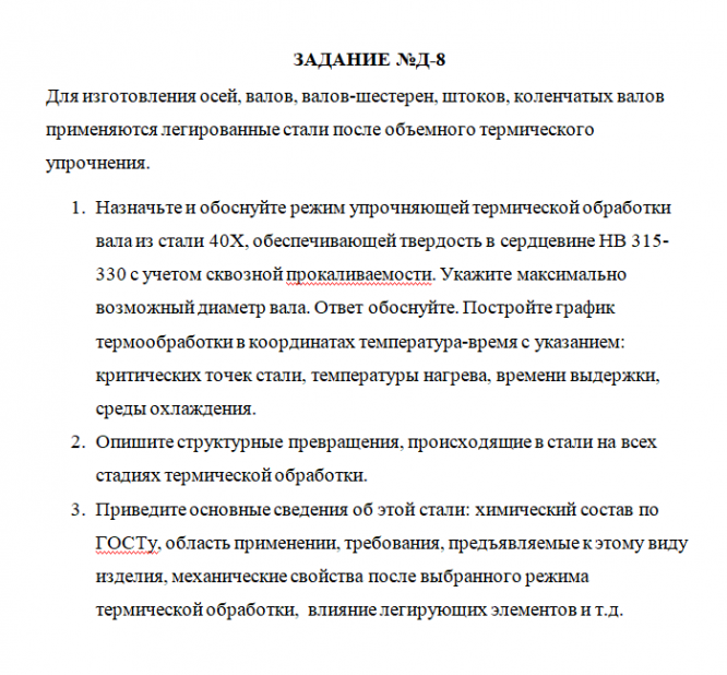 ДЗ Д: Выбор материала и технологии термической обработки вариант 8