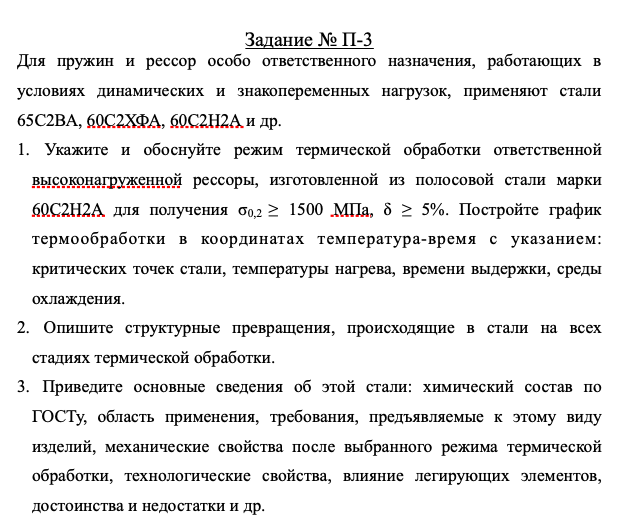 ДЗ П: Выбор материала и технологии термической обработки вариант 3