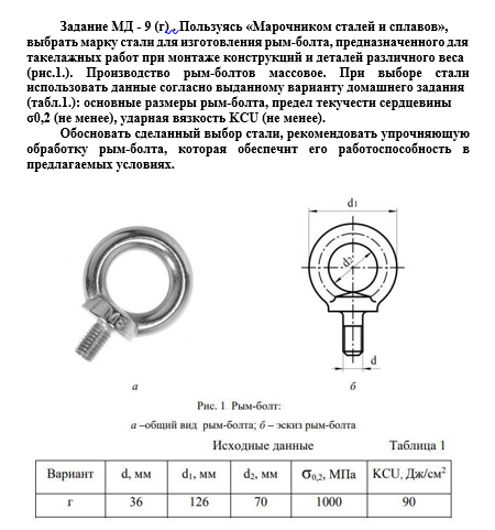 ДЗ МД: Выбор материала и технологии термической обработки вариант 9