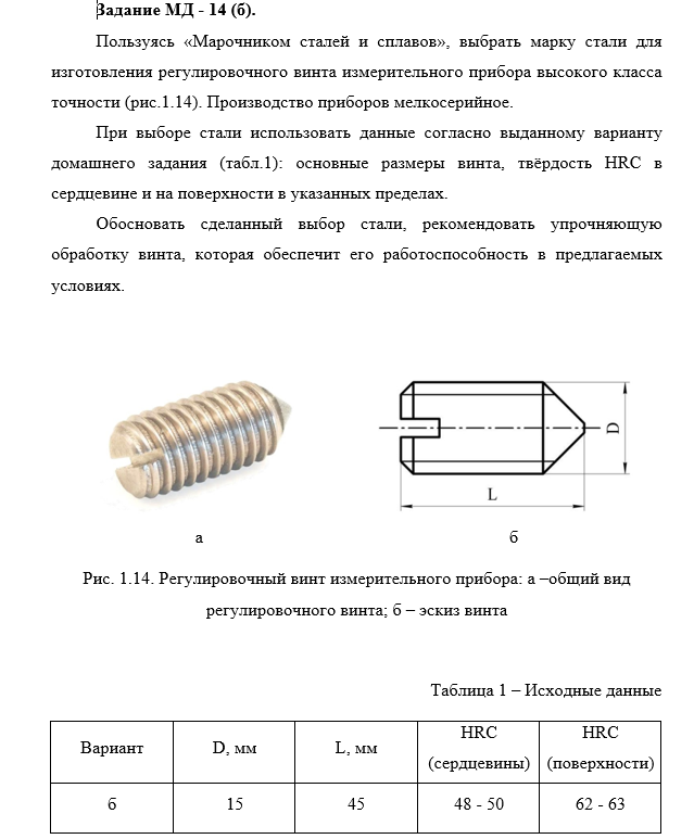 ДЗ МД: Выбор материала и технологии термической обработки вариант 14