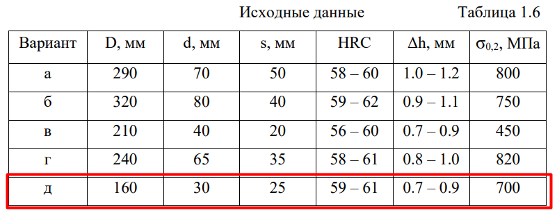 Задание МД - 6 (а – д). Пользуясь «Марочником сталей и сплавов», выбрать марку стали для изготовления тяжело нагруженного быстроходного червячного колеса станочного редуктора (рис.1.6). Производство редукторов крупносерийное. При выборе стали использовать данные согласно выданному варианту домашнего задания (табл.1.6): основные размеры червячного колеса, твёрдость поверхности зубьев HRC и глубина упрочнённого слоя Δh в указанных пределах, предел текучести сердцевины σ0,2 (не менее). Обосновать сделанный выбор стали, рекомендовать упрочняющую обработку червячного колеса, которая обеспечит его работоспособность при эксплуатации редуктора.
