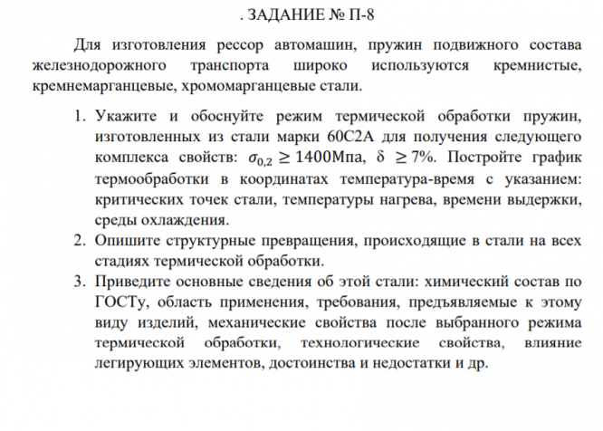 ДЗ П: Выбор материала и технологии термической обработки вариант 8