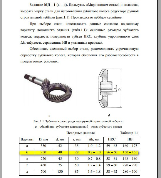 ДЗ МД: Выбор материала и технологии термической обработки вариант 1