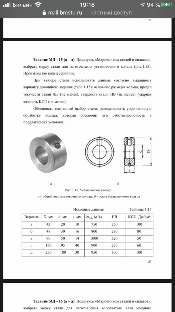 ДЗ МД: Выбор материала и технологии термической обработки вариант 15