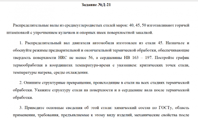 ДЗ Д: Выбор материала и технологии термической обработки вариант 21