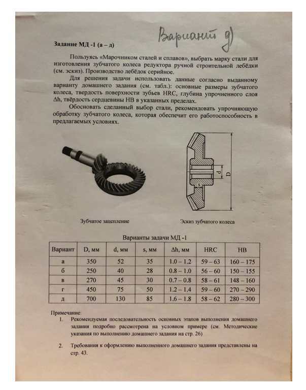 ДЗ МД: Выбор материала и технологии термической обработки вариант 1