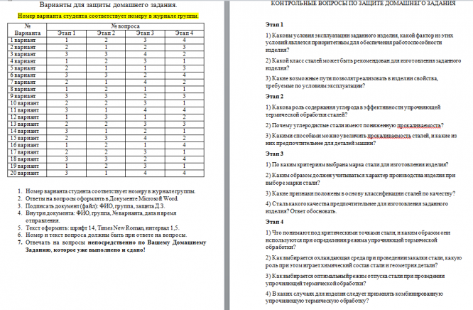 ДЗ МД: Выбор материала и технологии термической обработки вариант 8