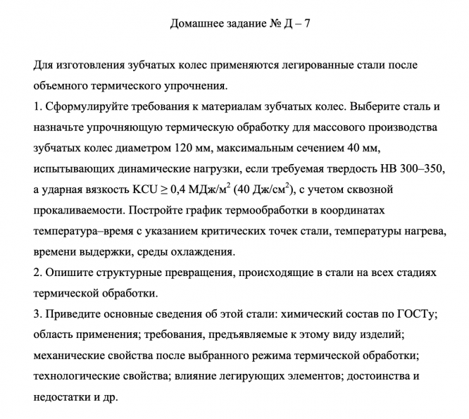 ДЗ Д: Выбор материала и технологии термической обработки вариант 7