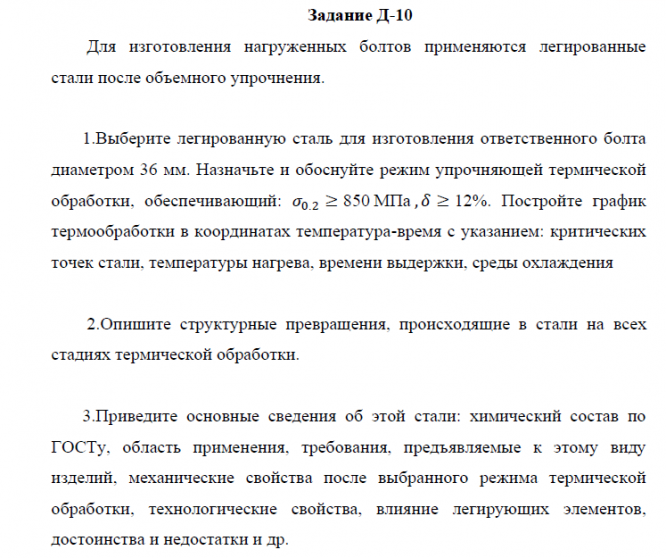 ДЗ Д: Выбор материала и технологии термической обработки вариант 10