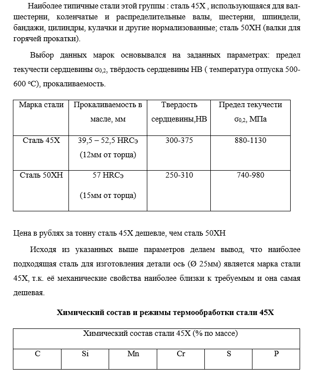 Выбор данных марок основывался на заданных параметрах: предел текучести сердцевины σ0,2, твёрдость сердцевины НВ ( температура отпуска 500-600 oC), прокаливаемость.
