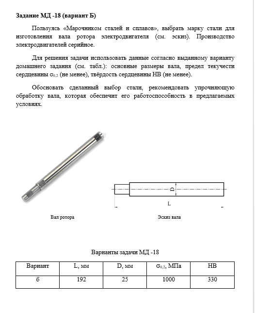 ДЗ МД: Выбор материала и технологии термической обработки вариант 18
