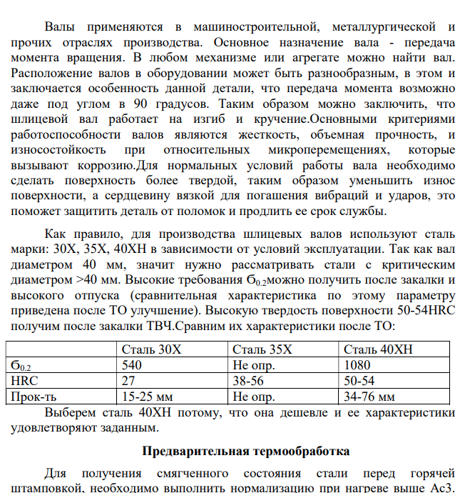 Обосновать сделанный выбор стали, рекомендовать упрочняющую обработку шлицевого вала, которая обеспечит его работоспособность в предлагаемых условиях.