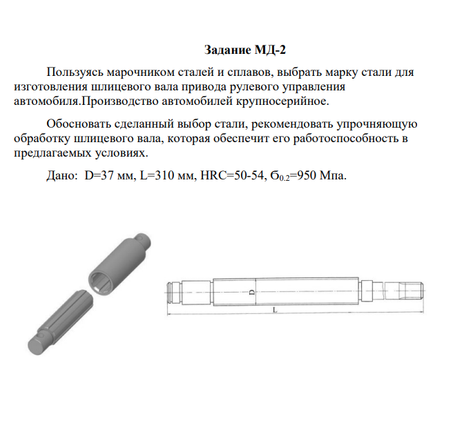 Пользуясь марочником сталей и сплавов, выбрать марку стали для изготовления шлицевого вала привода рулевого управления автомобиля.Производство автомобилей крупносерийное.