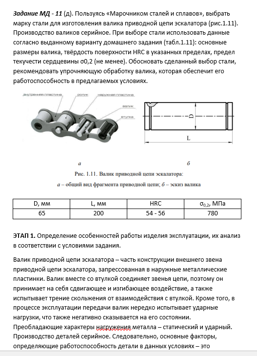 ДЗ МД: Выбор материала и технологии термической обработки вариант 11