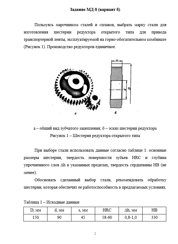 ДЗ МД: Выбор материала и технологии термической обработки вариант 8