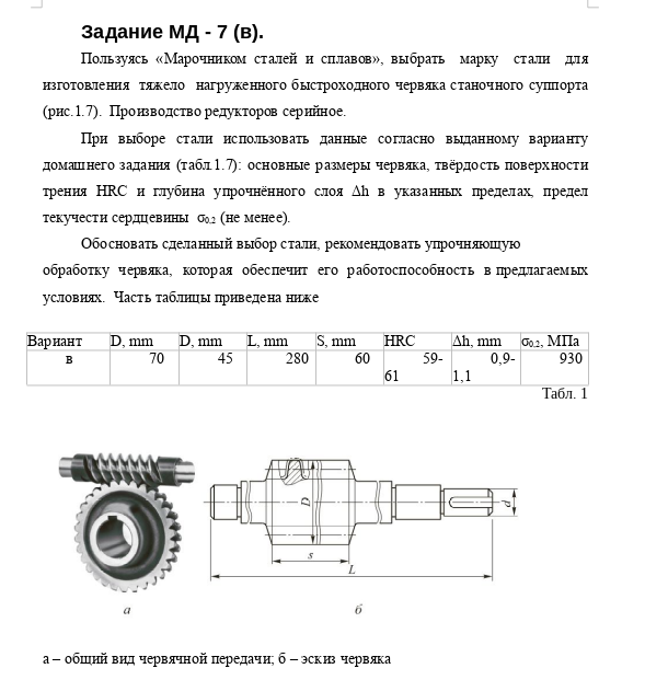 ДЗ МД: Выбор материала и технологии термической обработки вариант 7