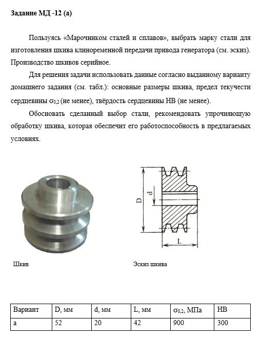 ДЗ МД: Выбор материала и технологии термической обработки вариант 12