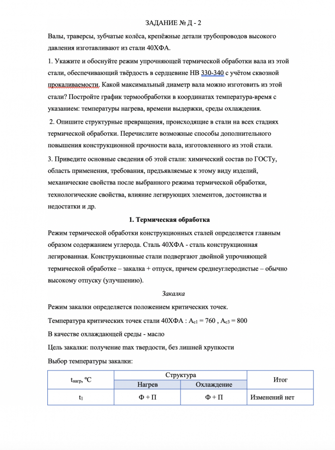 ДЗ Д: Выбор материала и технологии термической обработки вариант 2