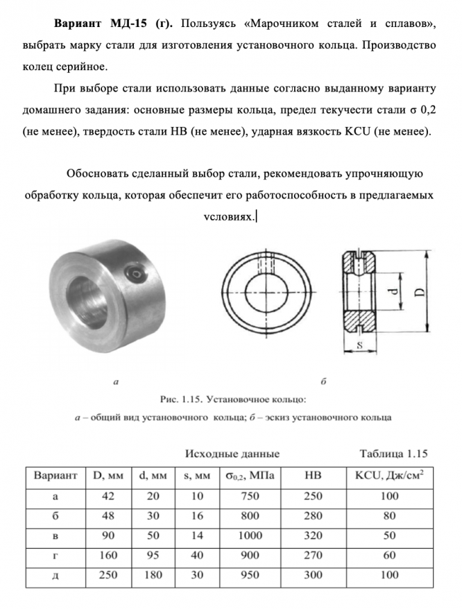 ДЗ МД: Выбор материала и технологии термической обработки вариант 15