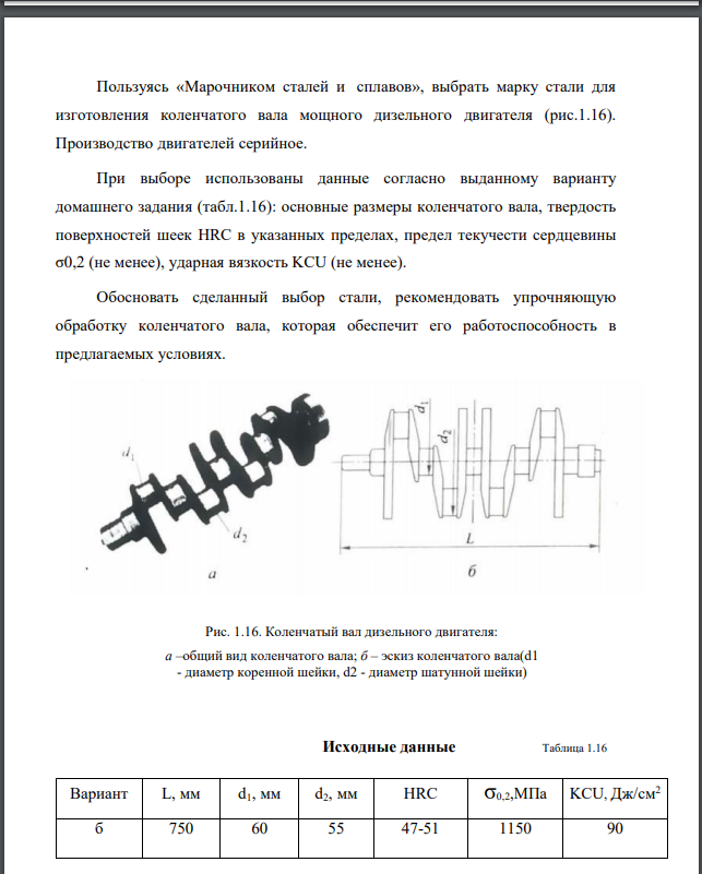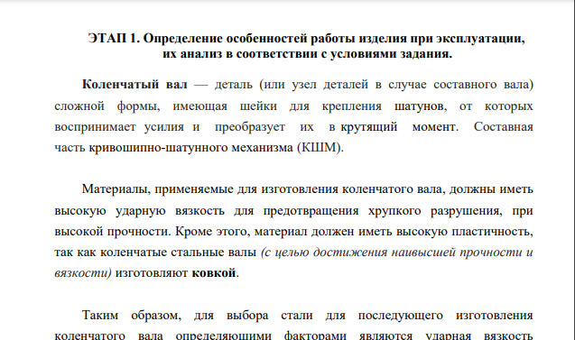 Коленчатый вал. Выбранная сталь из "марочника" Сорокина настолько идеально подходит, как будто методисты, разрабатывавшие задание, в голове у себя думали, что ответом на вопрос "Какую же сталь выбрать в этом варианте?" будет именно эта сталь.