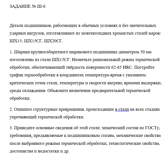 ДЗ Ш: Выбор материала и технологии термической обработки вариант 6