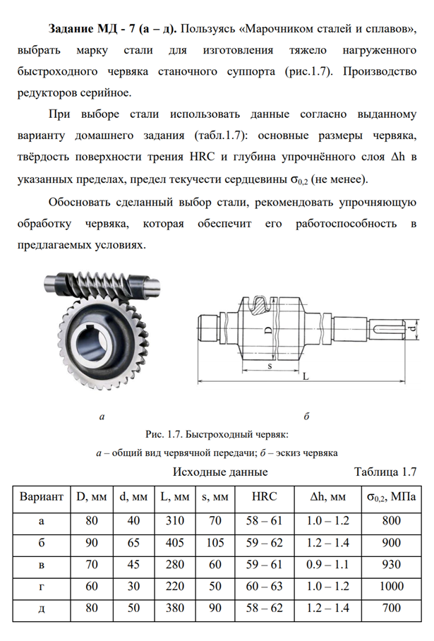 ДЗ МД: Выбор материала и технологии термической обработки вариант 7