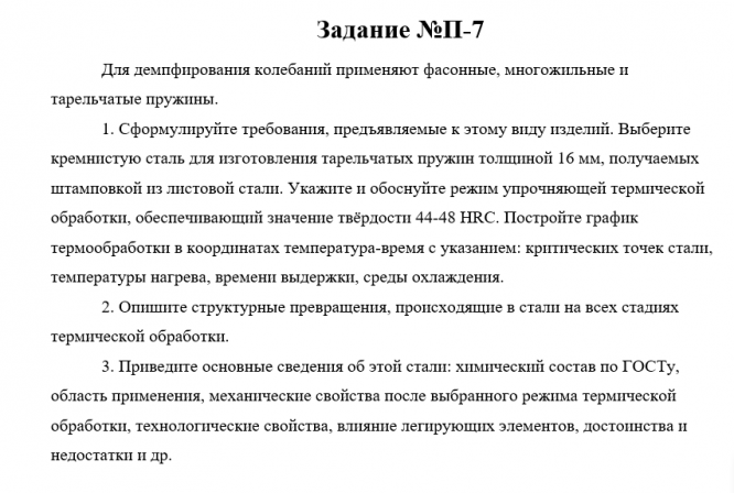 ДЗ П: Выбор материала и технологии термической обработки вариант 7