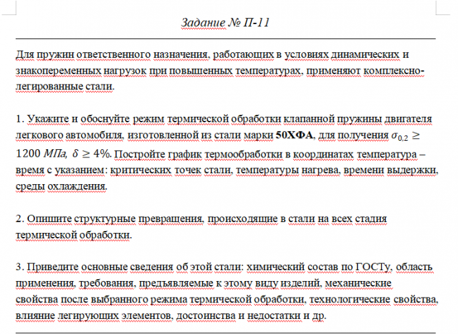 ДЗ П: Выбор материала и технологии термической обработки вариант 11