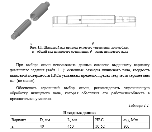 Пользуясь марочником сталей и сплавов, выбрать марку стали для изготовления шлицевого вала привода рулевого управления автомобиля (рис. 1.1). Производство автомобилей крупносерийное.