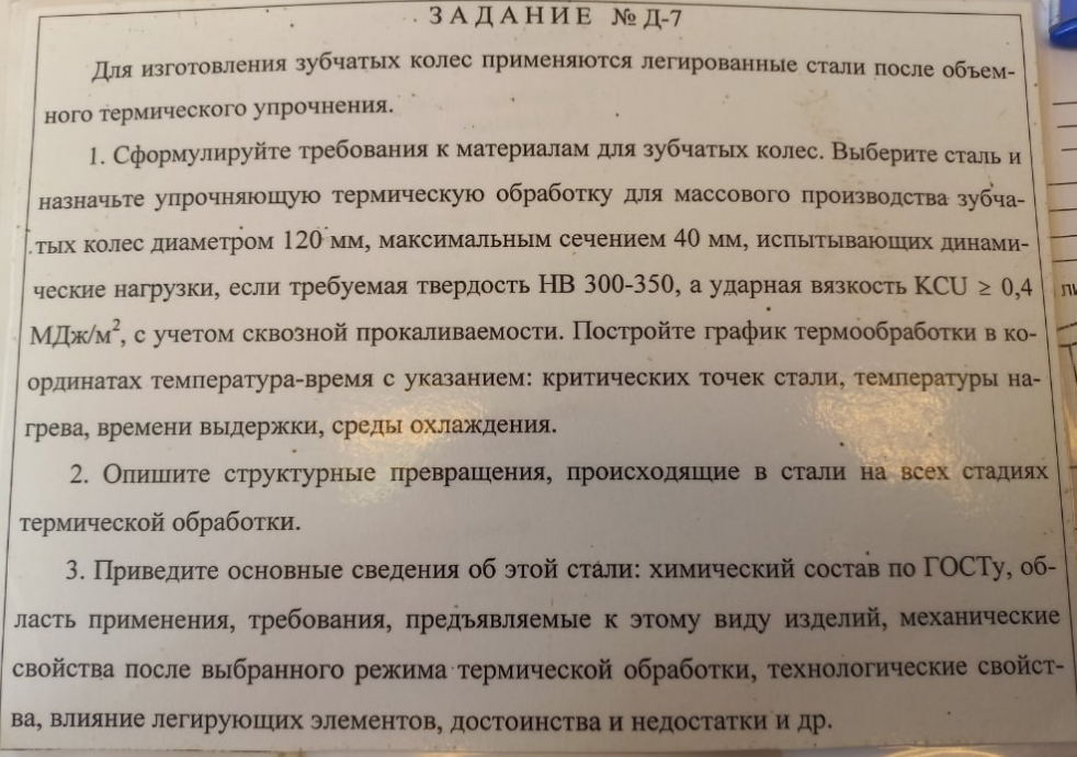 ДЗ Д: Выбор материала и технологии термической обработки вариант 7