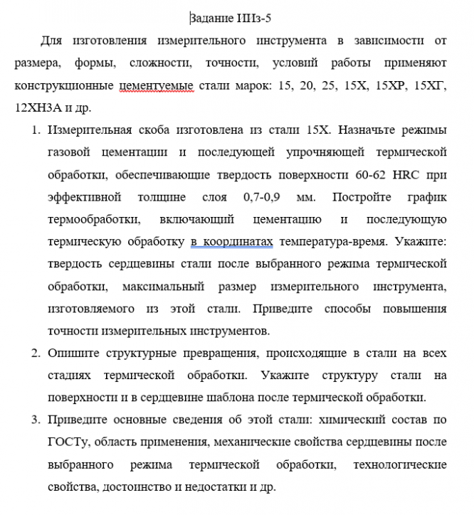 ДЗ ИИз: Выбор материала и технологии термической обработки вариант 5